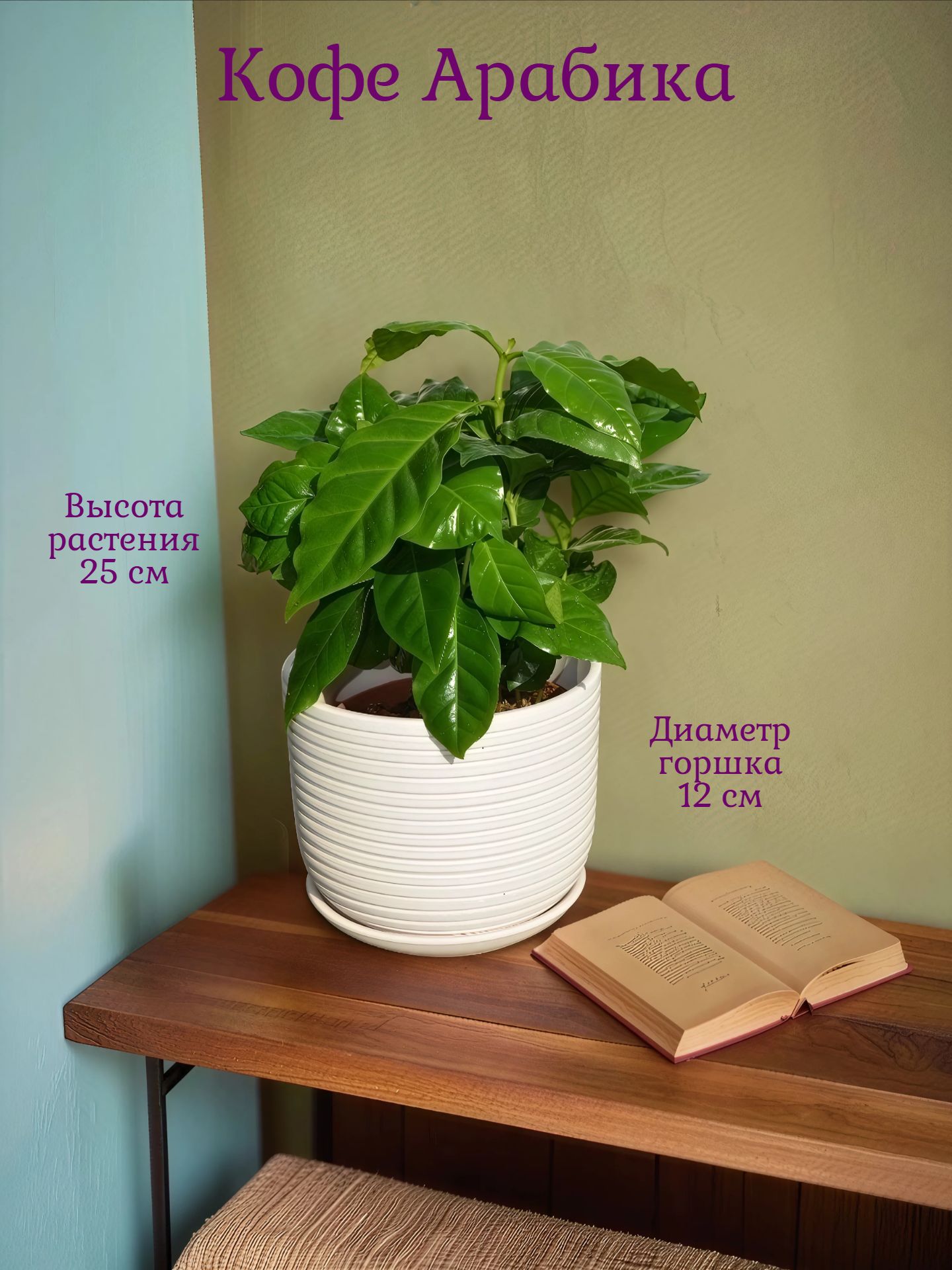 Арабика (Coffea arabica) — самый популярный вид для домашнего выращивания. Родом из высокогорных районов Эфиопии. Представляет собой компактное дерево высотой до 1,5 м. Листья темно-зеленые, блестящие, удлиненной формы. Неприхотливый вид, который легко адаптируется к комнатным условиям. Дает высококачественные кофейные зерна с нежным ароматом.